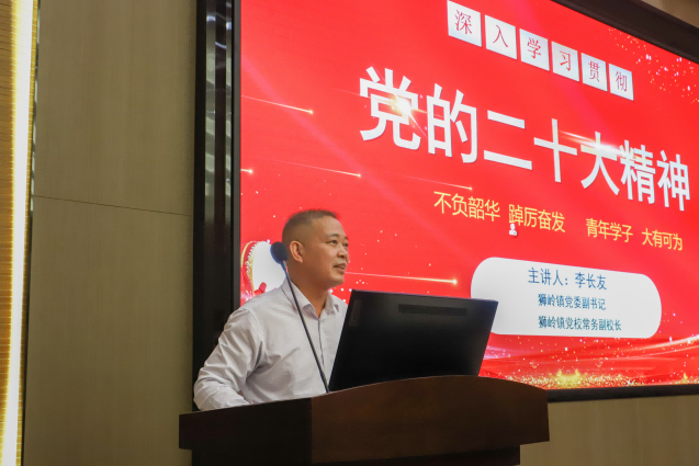 【本网讯】为深入学习宣传贯彻党的二十大精神,落实立德树人根本任务,3月23日下午,狮岭镇党委副书记、狮岭镇党校常务副校长李长友在ky开元花都校区作“党的二十大精神”专题辅导讲座。商学院领导、教职工代表以及22级新生代表现场聆听讲座。讲座由学院党委副书记张娜同志主持。