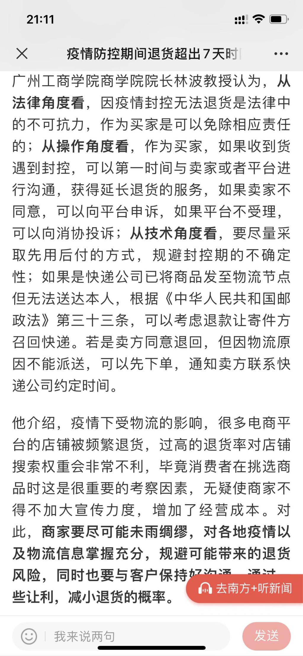 【南方+】《疫情防控期间退货超出7天时限能退货吗,专家:合理诉求,不应拒绝》https://static.nfapp.southcn.com/content/202212/02/c7134314.html?colID=5774&enterColumnId=2147483647&from=weChatMessage&date=bnVsbA==&layer=3