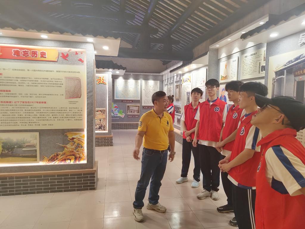 在正式开展调研之前,杏坛镇桑麻村村长何暧平带领团队参观了桑麻村史馆,为团队成员详细讲解桑麻村的起源、红色革命历史、桑麻村水产养殖情况和具有当地特色的黑毛节瓜,让团队成员深刻了解到当地的红色历史文化和养殖情况。