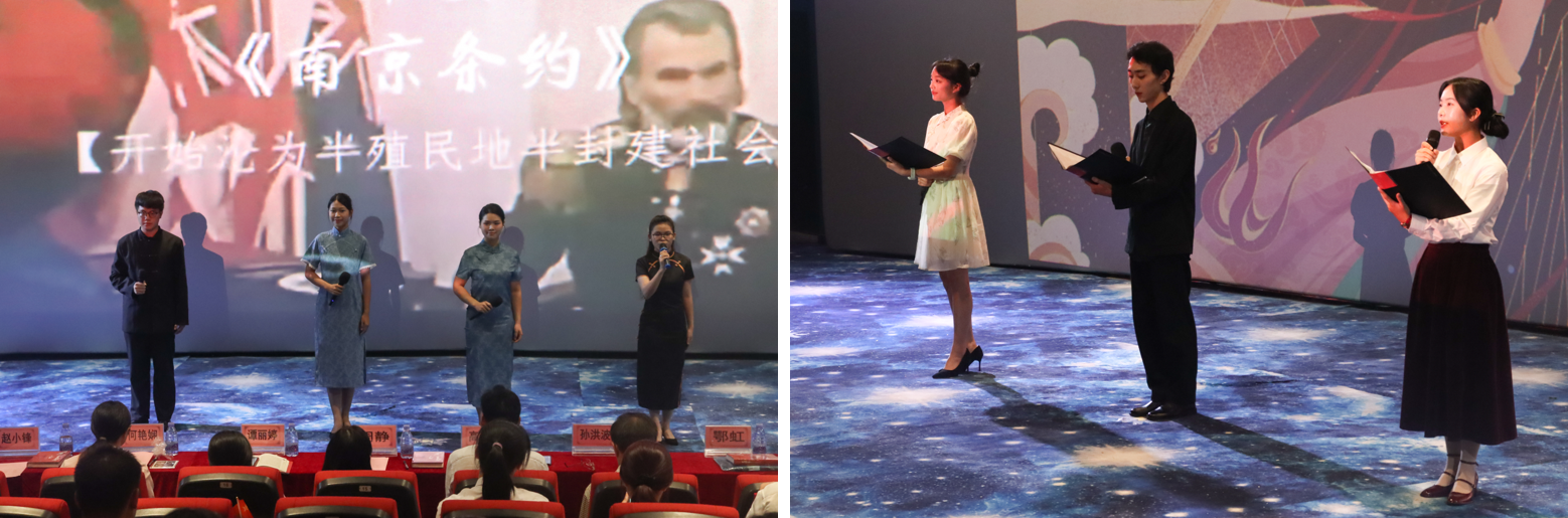 【本网讯】为加深学生对中国共产党光辉历史和伟大精神的理解和认知,增强学生爱党爱国情怀,11月9日,在三水校区学生活动中心影视厅,管理学院党委与马克思主义学院党总支联合举办“五育并举、融合育人”教育工程德育教育活动——红色经典咏传承·盛世华夏心赞叹诵读大赛。经过对来自全校各学院共计82支队伍作品的初赛选拔,来自各学院的十支队伍脱颖而出,顺利进入诵读大赛决赛。马克思主义学院党总支、管理学院党委、学校党委相关负责人,管理学院学工办及全体辅导员老师出席。