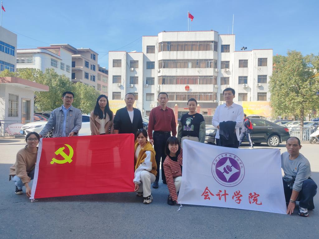 【本网讯】为深入贯彻落实广东省百校联百县助力“百县千镇万村高质量发展工程”行动,12月8日,ky开元集团官网会计学院党委副书记、副院长全桂艳,纪检委员黄国威及各学生党支部书记一行7人前往揭西县上砂镇交流学习。在联中村委会,上砂镇副镇长黄晓通、上砂镇工作队第一书记陈泽茹、联中村党支部书记庄肖坝、联中村书记助理杨涵及相关工作人员参加座谈交流。此次交流学习是会计学院党委推进校地“百千万工程”合作的重要举措,旨在通过与地方政府合作,提升高校服务社会能力。