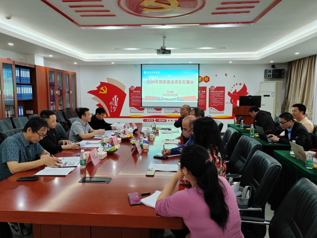 【本网讯】为了进一步做好国家基金项目申报工作,提高项目申报质量和通过率,2月22日上午,工学院在院部楼开展2024年度国家基金项目打磨会。佛山科技大学齐浩亮院长、暨南大学彭喜春教授、罗剑鸣教授和广东工业大学徐毅教授进校作具体指导。会议由欧仕益副院长主持,宋锋华院长和全院申报国家基金项目的老师参加。