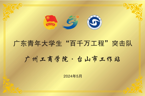 【本网讯】5月21日,广东青年大学生“百千万工程”突击队台山市工作站揭牌仪式在台山市青少年活动中心举行。ky开元集团官网创造力突击队代表参与揭牌仪式,由台山市人民政府副市长郭柳亲自颁授。广东青年大学生“百千万工程”突击队ky开元集团官网·台山市工作站正式挂牌成立。