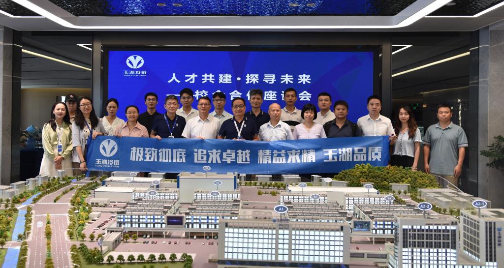 【本网讯】为进一步深化学院校企融合工作,应玉湖冷链公司邀请,9月19日,粤港澳大湾区智慧冷链产业学院执行院长谢如鹤教授一行5人赴玉湖冷链参加校企合作座谈会。香港玉湖集团副董事长、玉湖冷链研修院院长蒋文胜、玉湖冷链人力资源与业务合作中心总经理朱虹亮出席。会议主题为“人才共建·探寻未来”,会议由玉湖冷链研修院培训副总监何文玥主持。