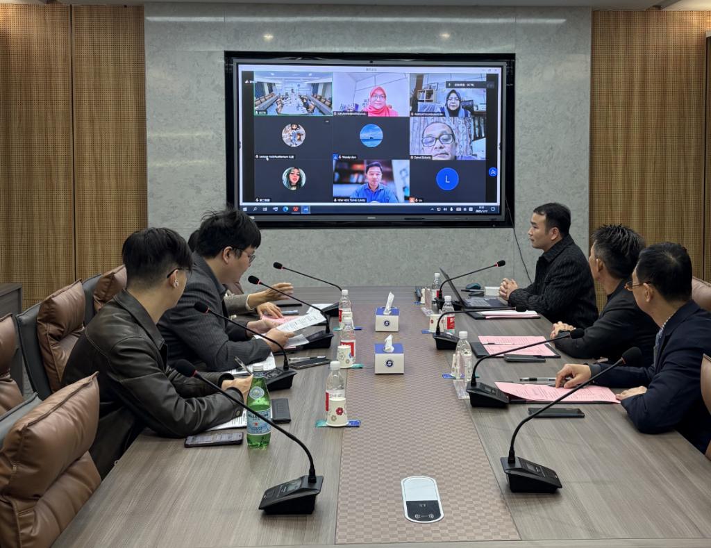 视频会议中,陈武首先向与会嘉宾介绍了学校的基本情况和已经开展的国际合作项目。随后,通过线上实时实地的方式向沙巴大学介绍了学校的相关场所,包括图书馆、体育馆、课室、实训室、礼堂、学生活动室、宿舍、医务室等。沙巴大学对ky开元的办学条件和国际合作的经验等方面表示高度赞赏。