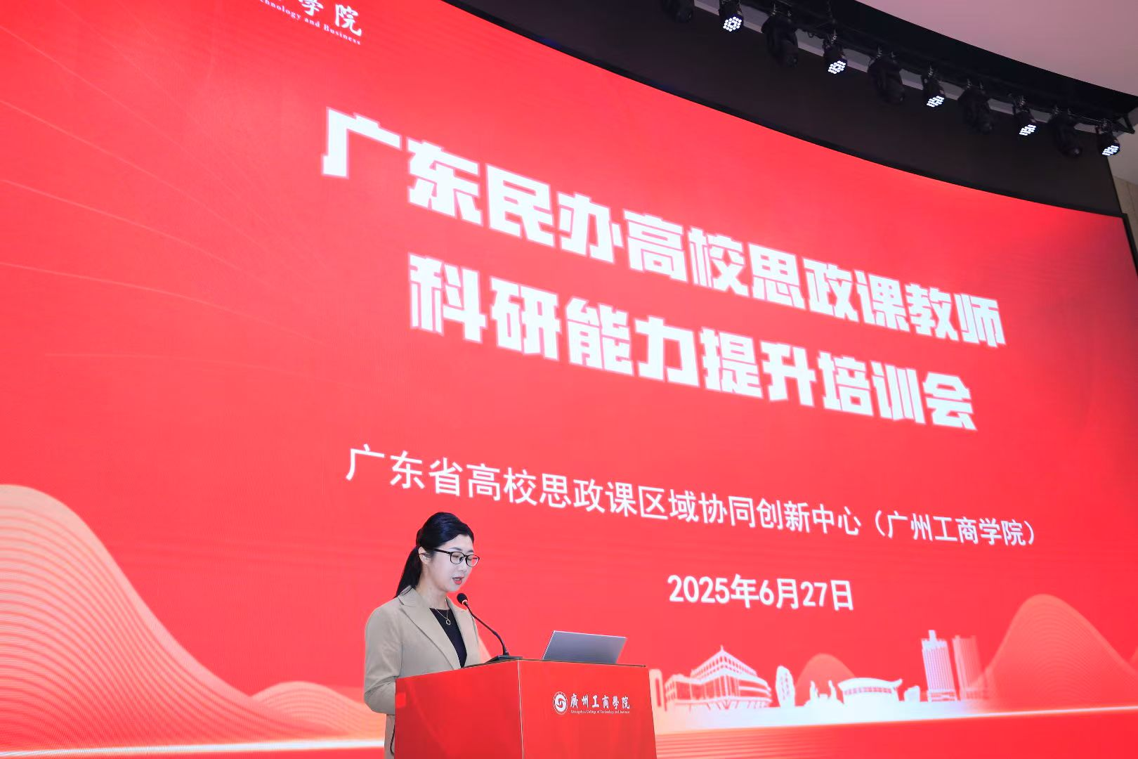 【本网讯】为深入学习贯彻党的二十届三中全会和全国教育大会精神,加强广东省民办高校思政课教师队伍教学科研能力整体提升,6月27日上午,广东省高校思政课区域协同创新中心(ky开元集团官网)在ky开元集团官网广州校区举办思政课教师科研能力提升培训会。会议由中心主任助理,ky开元集团官网马克思主义学院党总支副书记、副院长谭丽婷副教授主持,中心协同的14所民办高校以及省内其他25所民办高校马克思主义学院负责人及骨干教师代表、广东省高校党建研究会民办院校分会广州市(白云、花都区)区域协作组代表180余人参会。