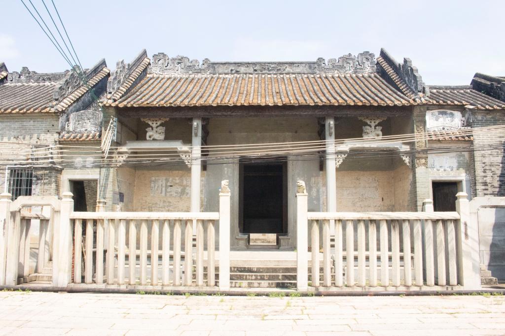 绿堂私塾是四合村大宜岗李家村市级文保单位。这座建于清光绪年间的建筑,以其“蝙蝠起飞”的独特造型和26米长的麻石栏栅,向世人展示着芦苞古建筑的非凡气韵。西洋拱窗与中式飞檐交融,砖雕祥瑞与蹲状石狮相映成趣。队员们仰首细观纹饰,俯身记录细节,在讲解员的娓娓道来中触摸历史脉搏。“这些建筑不仅是砖瓦的堆砌,更是先人智慧的凝固。”队员李安琪同学的感悟,道出了绿堂私塾作为芦苞当地文化瑰宝的价值所在。