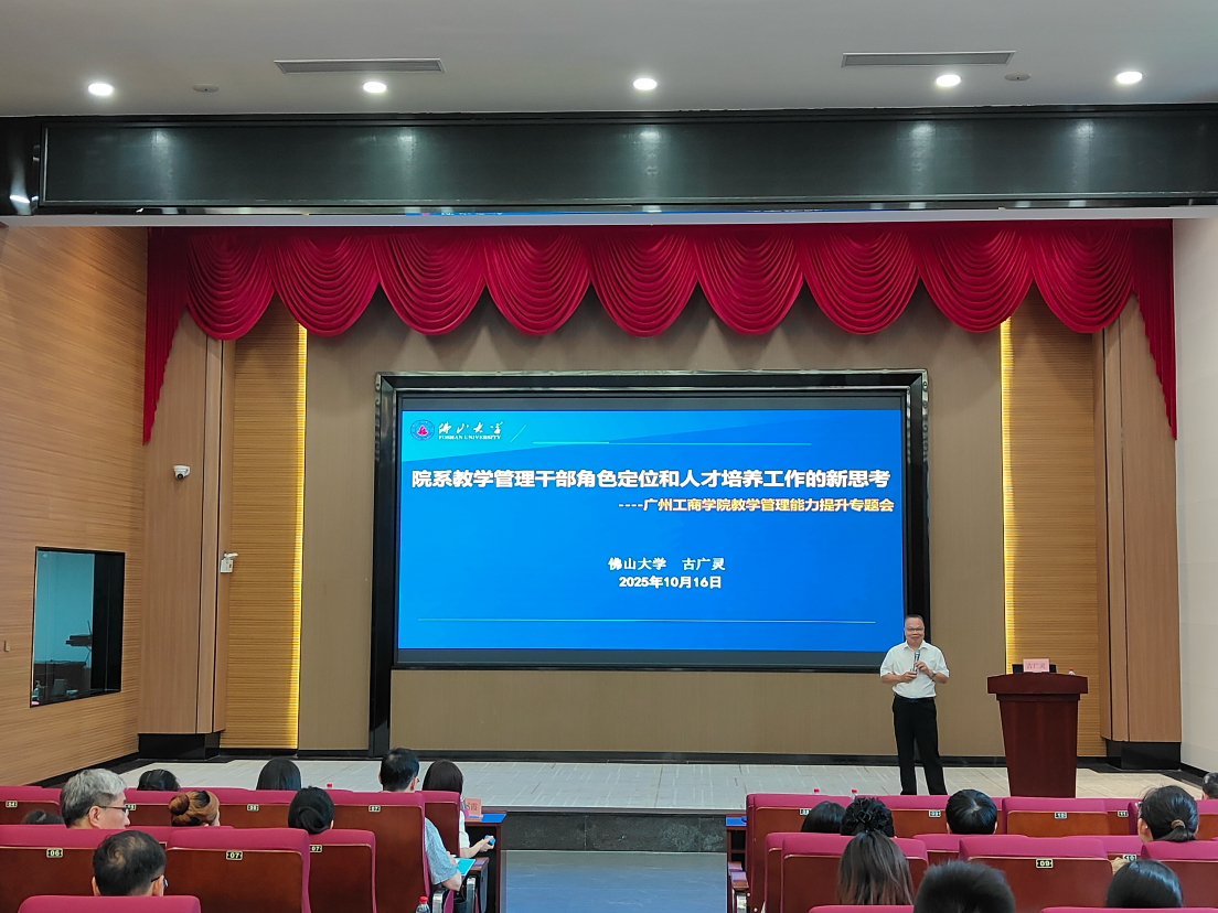 培训特邀教育部本科教育教学审核评估专家、佛山大学高等教育研究员古广灵作专题报告。他以《院系教学管理干部角色定位和人才培养工作的新思考》为题,系统阐释了新时代高等教育高质量发展背景下院系教学管理干部的角色定位与工作路径,围绕“五讲”(讲政治、讲素养、讲执行、讲沟通、讲业务)展开,深入剖析了人才培养改革的“四个3”行动(三个注重、三个对接、三化同步、三个转型),为与会人员提供了清晰的工作思路和实施路径。