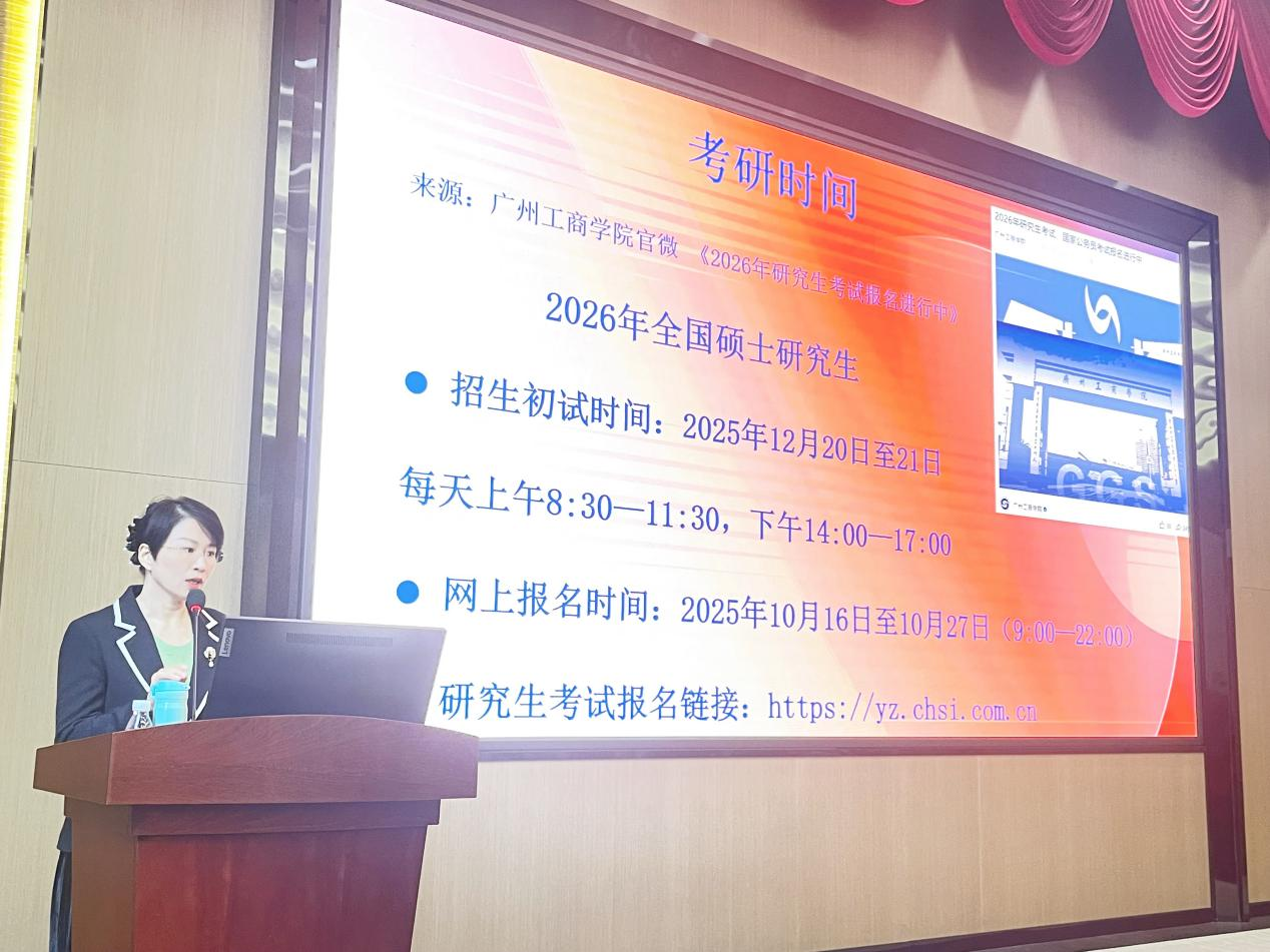 张扬老师紧扣“德学·五进”育人理念,为师生们带来一场内容丰富、导向清晰的专题讲座。她系统梳理了国内考研的全流程,从报考条件、考试科目到复试技巧,逐一进行了详细讲解。同时,她强调升学路径的选择应紧密结合个人兴趣、职业规划与专业优势,鼓励同学们立足“德学”修养,做到“有目标、有干劲、有准备”,为“进社会”打下坚实基础。