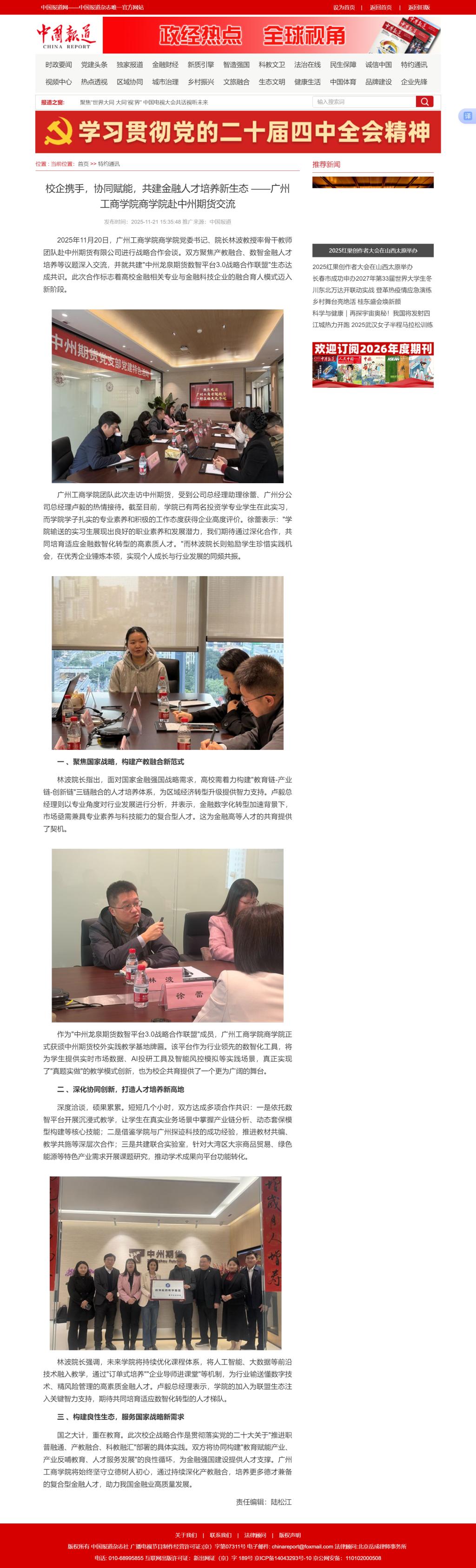 【本网讯】11月21日,《中国报道》以《校企携手,协同赋能,共建金融人才培养新生态》为题,专题报道了ky开元集团官网商学院与中州期货有限公司的战略合作成果。作为中央级权威媒体,《中国日报》同步刊发了深度解读文章,进一步彰显了学校和学院在深化产教融合、服务国家金融战略和构建协同育人生态方面的创新实践。