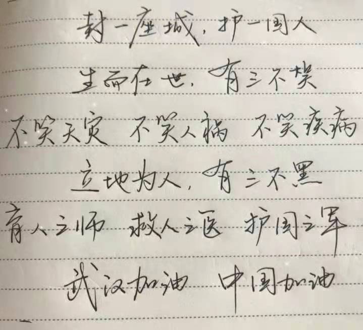 2月7日,学院官微发布推文《武汉加油!广工商师生用原创作品“声”援一线,手书祝福》,展示了部分优秀书法作品,其余作品将陆续择优展示。音频、视频作品截稿日期为2月10日,征文作品截稿日期为2月15日。学院校园网、官微、抖音等平台将对优秀作品进行分批展示。(宣传部)