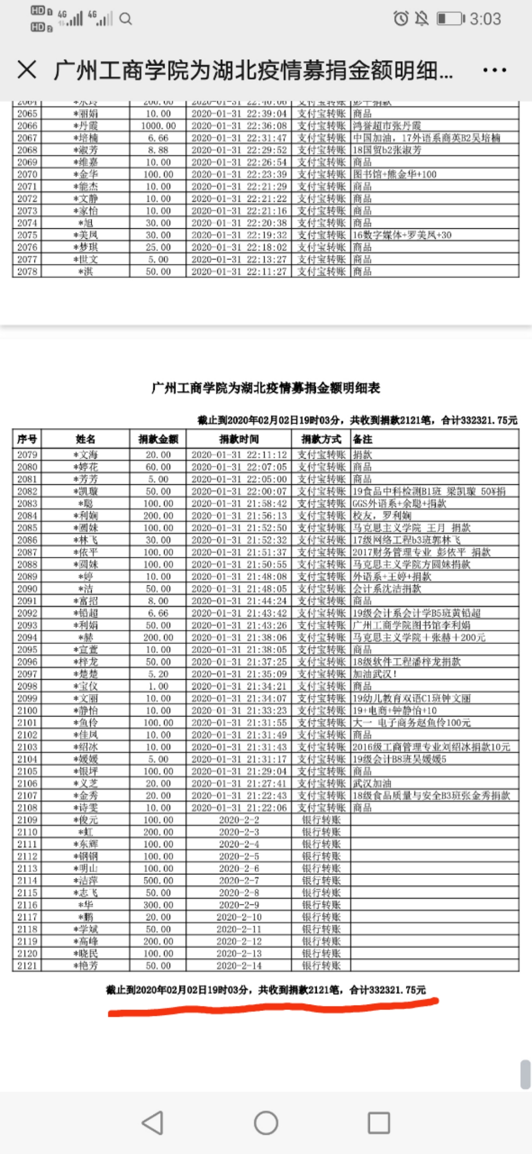 【本网讯】人间有大爱,大学显担当,ky开元集团官网董事会和党政领导班子深切关心湖北地区疫情。学院领导亲自部署动员,校友会、宣传部、学生处、团委、财务处、各系(部、院)和二级学院及各基层党组织协同参与,学院董事长、院长、书记及院领导带头捐款,学院中层干部、各地校友分会、广大师生积极响应,自2020年1月30日22:00发推文倡议至2月2日19:03止,共收到善款¥332321.75元。