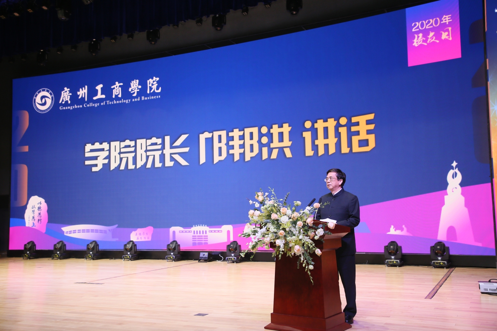邝邦洪院长在讲话中表示,学院为每一个有梦想的学子提供广阔的发展空间,相信在这里,大家一定能充分施展才华,放飞绚丽多彩的梦想。他向获奖新生代表分享了三点体会:一是“德学”引路、提升素质;二是勤学笃行、锤炼本领;三是奋斗不止、志存高远。同时,作为校友会的执行会长,邝院长对校友们的返校表示感谢,感谢校友们在离开母校多年后,在各自的工作岗位上努力工作,在服务社会、服务人民的同时,始终没有忘记学院的培育之恩。最后,他朗诵了毛泽东同志的诗歌《卜算子·咏梅》,与大家共勉前进。