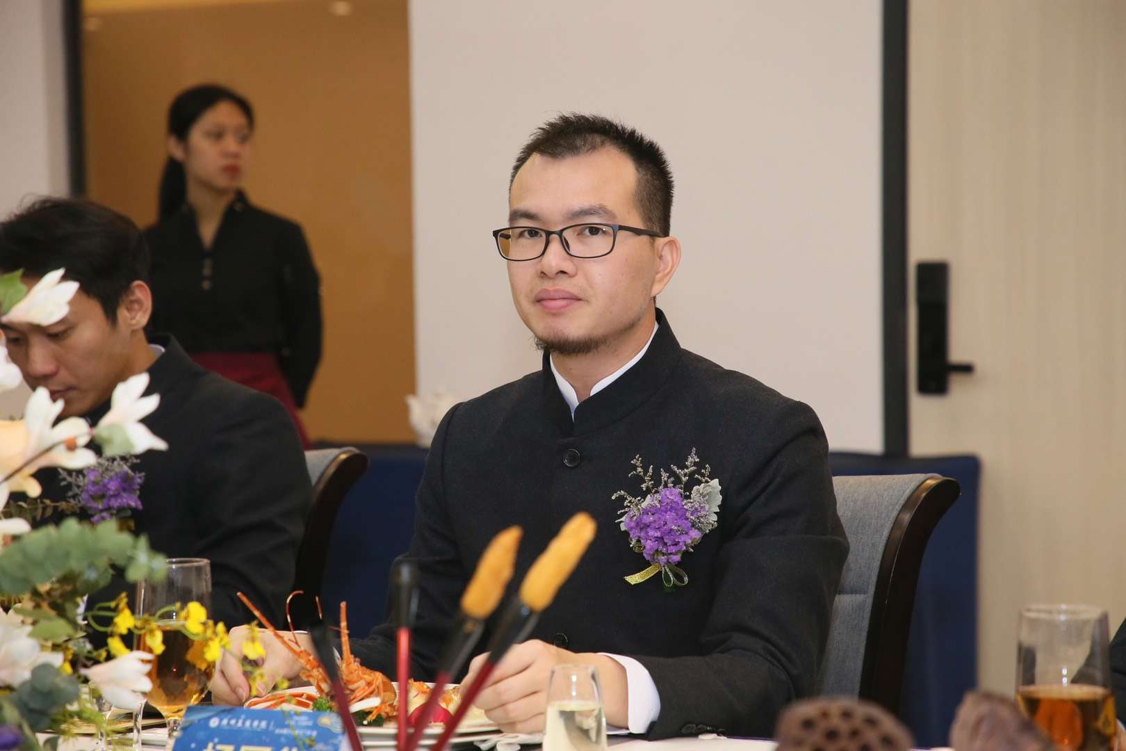 颁奖典礼上,优秀校友代表为学院领导班子成员敬献鲜花,感谢领导教诲,感谢师长付出,感谢母校给予的关怀与帮助。