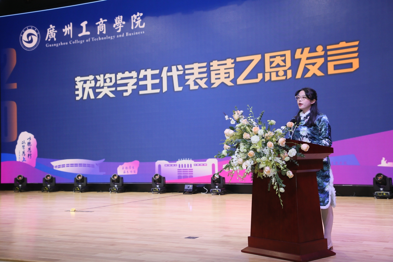 我要特别感谢学院授予我的这个荣誉,作为外语系商务英语的新生奖学金获得者,我认为这个奖项是对我曾经为学习努力付出的肯定,我会一如既往的勤学善问,积极上进,学有所成,不断提升自身价值,再创辉煌。(黄乙恩 2019级商务英语B2班)