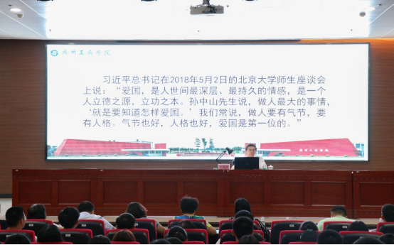 邝邦洪院长的授课题目是《热爱祖国,勤奋学习》。他以习近平总书记的讲话:“爱国,是人世间最深层、最持久的情感,是一个人立德之源、立功之本。孙中山先生说,做人最大的事情,“就是要知道怎么样爱国。”我们常讲,做人要有气节、要有人格。气节也好,人格也好,爱国是第一位的。”为开场白阐述爱国的重要性,以“祖国——我的母亲,祖国——我的精神支柱,爱国是一种重大的政治原则”为思路讲述为什么要爱国。爱国是一种情感,但爱国需要本领。接下来他用七个学会,即:学会自学、学会操作、学会健体、学会表达、学会交际、学会创新、学会自立来教育引导青年大学生勤奋学习,不断提高自身能力,增强竞争实力,向时间要学问,向时间要成果,向时间要生命的火花!