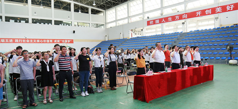 暑期社会实践队伍带队教师代表曾广志和学生代表陆咏媚相继上台发言。团委思源志愿队杨惠婷同学上台领誓。暑期社会实践活动队员现场签署了《安全承诺书》。
