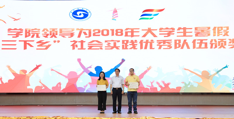 学院领导为2018年大学生暑假“三下乡”社会实践优秀队伍颁奖。
