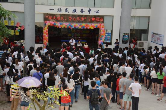 此外,本月是国家资助政策宣传月,为了让同学们更多的了解国家资助知识,帮助有需要的同学们更好的完成学业,在活动前期通过微博、微信、QQ群等多种平台和载体对“助学.筑梦.铸人”——大学生诚信贷款须知、助学贷款政策简介等进行了大力宣传。活动中,还以新颖的方式加入了国家资助知识有奖竞答,由电脑随机抽题,同学们答题,同学们顶着炎炎夏日,排着长队,热情高涨,积极参与。通过系列活动,以期让国家资助政策深入人心,温暖人心,励志人心。