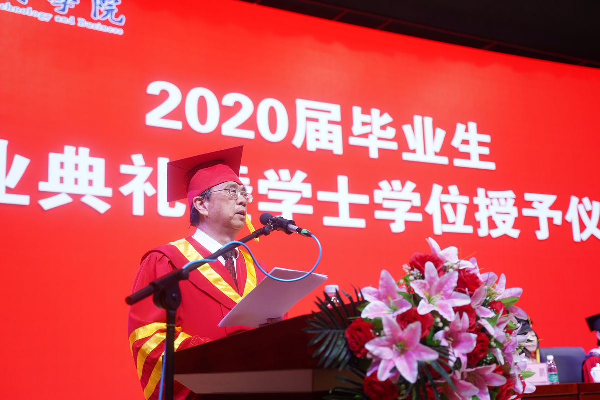希望同学们走上工作岗位之后,要做脚踏实地的工作者。在今后的生活工作中,你们要善于与人沟通、与人合作、与人共事,要有团队意识和团队精神;要谦虚谨慎,多些理解,多些宽容,要扎扎实实地工作,干一件,成一件,干好一件;要用自己的智慧、力量、精神,贡献社会,回报父母,发展自己。