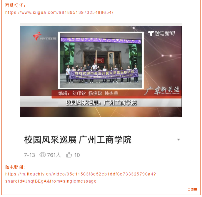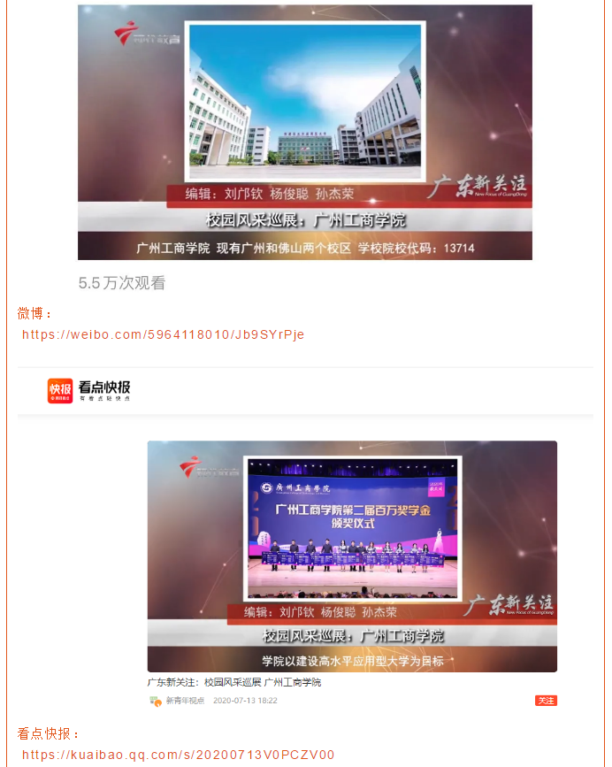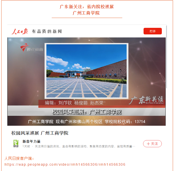 近日,《ky开元集团官网》校园风采展播在人民日报、腾讯视频、优酷、搜狐、爱奇艺等新媒体客户端和广东广播电视台现代教育频道《广东新关注》栏目上进行推送,其中在微博的播放量阅读量