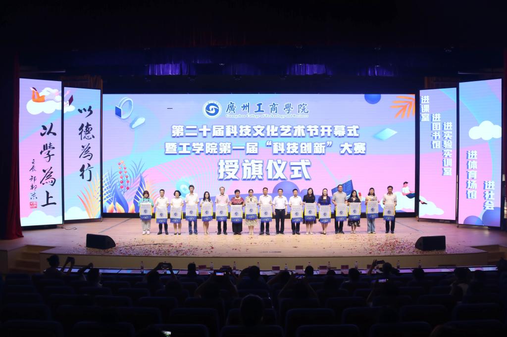 最后,校长邝邦洪教授宣布第二十届科技文化节暨工学院第一届“科技创新”大赛正式开始,并为各单位授旗。