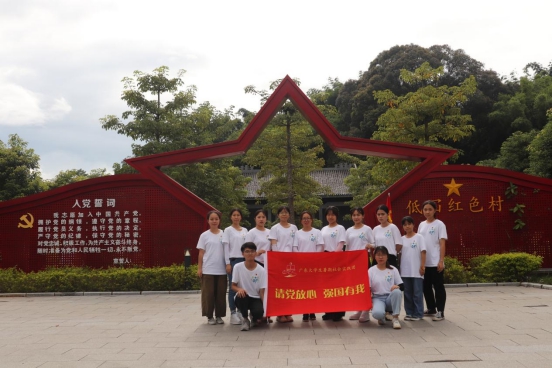 低冚村是抗日战争时期共产党建立的革命根据地,是广东省第一批“红色村”党建示范工程,是龙门县首个革命传统教育和乡村振兴战略实践基地,有十分丰富的红色文化资源。青萌低冚实践团首先与村党总支书记王炯东同志等进行座谈交流,深入了解低冚村红色旅游产业建设情况,充分领略红色旅游资源对乡村振兴的强大助推力。在当地讲解员的带领下,实践团先后参观了五角星大门、功臣之路、伏击战纪念公园及东江三支队革命纪念馆,感悟学习革命先烈舍生忘死的英勇事迹。