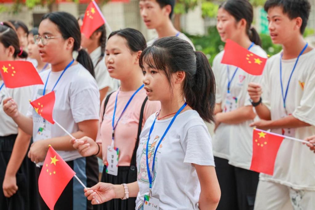 (学校青萌团队带领江坑青少年唱响红色歌曲)