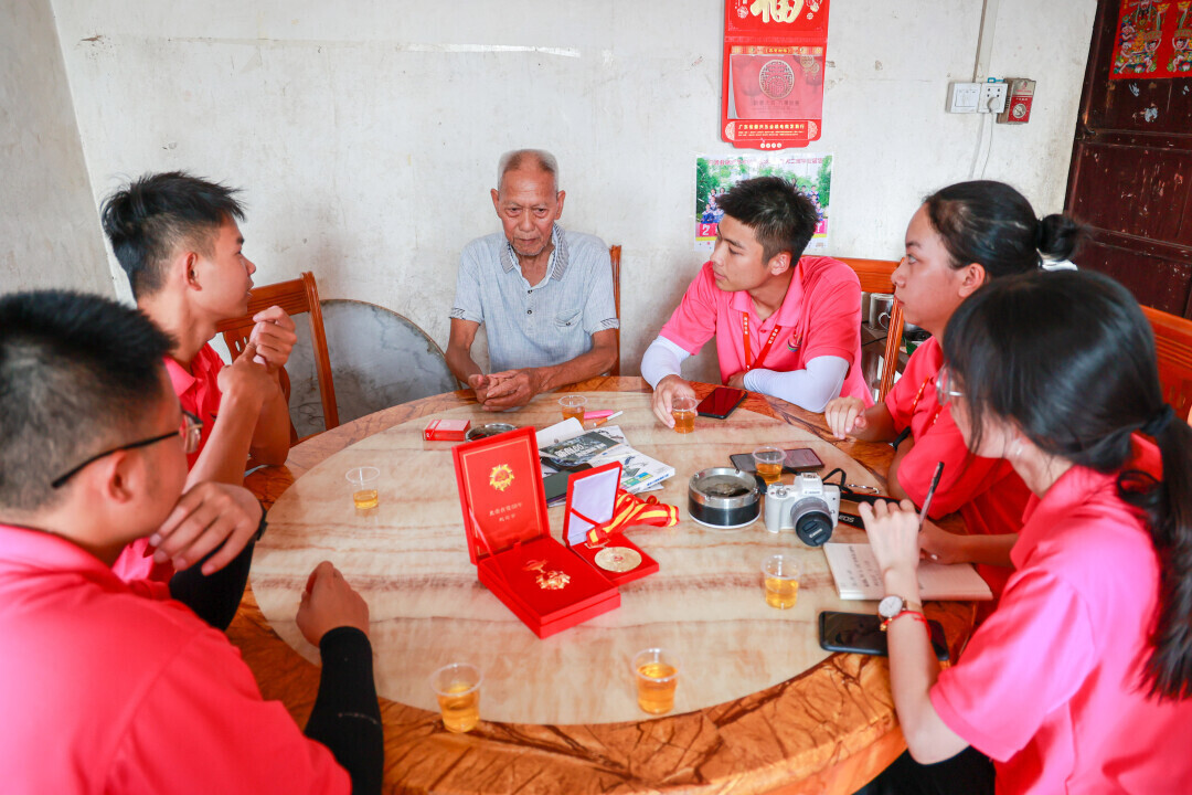 刘爷爷十分自豪地向江坑实践团拿出“光荣在党50年”纪念章和“南粤七一纪念”奖章,并谈及他的入党初心。