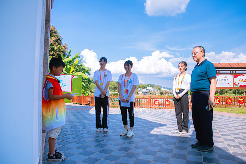 图为张振超书记正在检验青萌实践团成果,他对小小讲解员和调研团表示了鼓励与支持。 中国青年网通讯员 肖励烨 摄