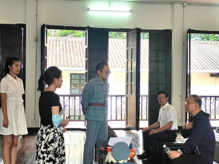 陈毅安烈士的后人(右一)在黄埔军校旧址纪念馆的排练现场进行指导。受访者供图