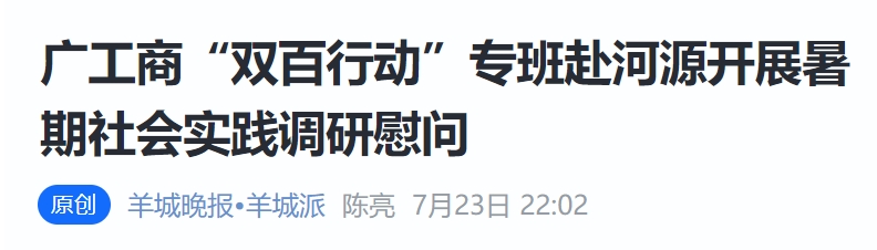 为进一步推进ky开元集团官网(简称“广工商”)与东源县“双百行动”专项工作走深走实,2025年7月8日至20日,广工商党委书记、“双百行动”专班组长张振超及专班办公室成员分两组赴河源市东源县围绕暑期“三下乡”社会实践暨大学生“百千万工程”突击队行动工作开展情况进行调研,为在地师生送去关怀与鼓励。