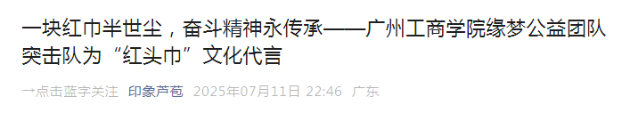 从对话艳阳红太极队、探访展览馆,到聆听锐爷爷的家族故事,缘梦公益团队突击队的调研之旅,是与“红头巾”精神的深度对话。成员们表示,将以此次经历为起点,把“红头巾”精神融入血脉,在乡村振兴等实践中,书写当代青年奋斗答卷,让红头巾精神在新时代持续闪耀,照亮更多逐梦之路。