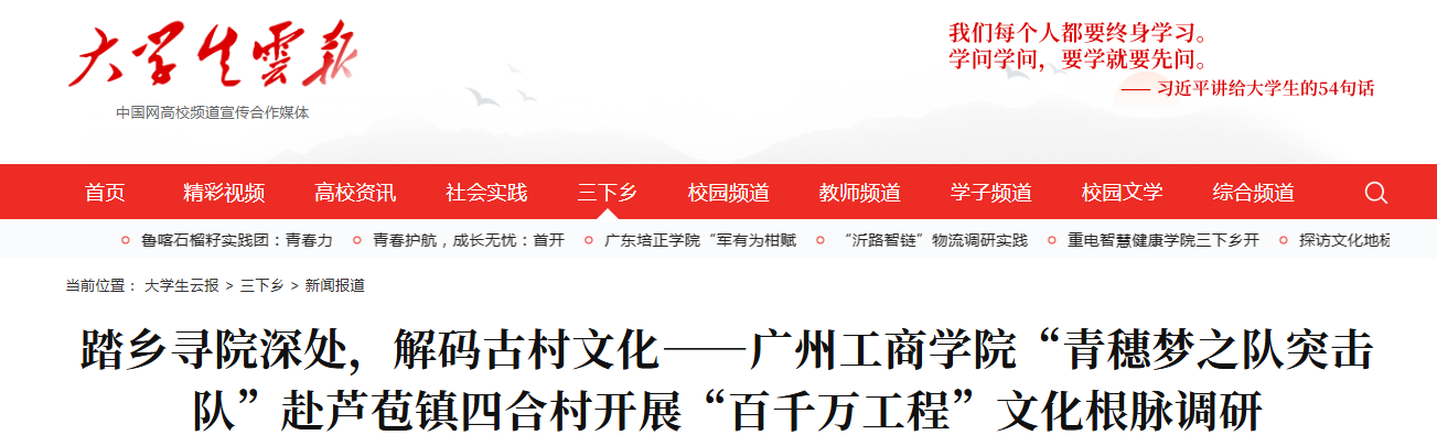 大学生云报7月14日讯(通讯员 邝伟杰)为贯彻落实大学生志愿者暑期文化科技卫生“三下乡”社会实践活动及广东青年大学生“百千万工程”突击队行动部署,7月9日,ky开元集团官网青穗梦之队突击队师生成员走进“百千万工程”典型村——芦苞镇四合村,开展以“探寻文化根脉,助力乡村振兴”为主题的社会实践活动,感悟四合村在乡村振兴中焕发的独特文化魅力。