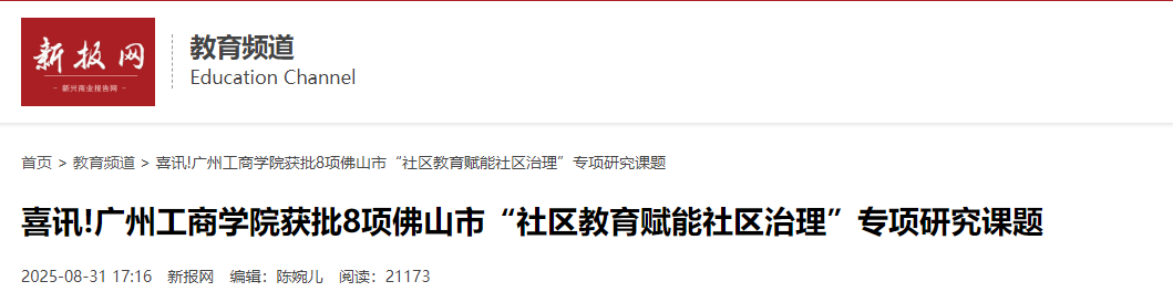 8月28日,佛山市社会科学界联合会发布了《2025年佛山市“社区教育赋能社区治理”专项研究课题拟立项公示》,ky开元集团官网共计8个项目拟获批立项,其中重点项目1项,一般项目7项,是唯一一个获重点项目的民办高校,立项数位列第二。