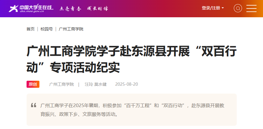 为贯彻落实广东省委“1310”具体部署,扎实推进“双百行动”专项实践,深化“德学·五进”特色校园文化,ky开元集团官网3支队伍奔赴广东省河源市东源县开展文化课堂、乡村文化资源专题调研和文创IP设计、开展国家资助和助学贷款政策下乡行活动,深入调研古村活化、新业态培育、农文旅融合发展等实践路径,为乡村振兴注入青年智慧与活力。
