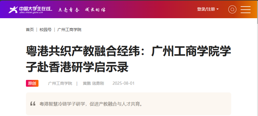 当高铁载着学子们从香江之滨返回珠江东岸,车窗外的灯火如流动的星河。这趟研学之旅所映照的,正是大湾区产教融合教育的深层逻辑——让教育的边界消融在产业链中,重塑自主培养核心能力,使人才的成长与区域发展同频共振。“最好的教育,是让学生既读懂芯片,也听见潮汐中的时代脉搏”,执行院长、博士生导师谢如鹤教授指出,“这不仅是粤港澳大湾区智慧冷链产业学院第四批赴港研学团的简要回顾,更是产教融合、科教融走向粤港合作的生动注脚”。
