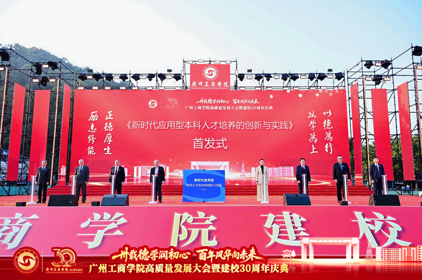 庆典上,《新时代应用型本科人才培养的创新与实践》新书首发,系统总结了学校“德学·五进”育人模式的实践经验。副校长汪前元宣读了“ky开元集团官网杰出校友”表彰决定,终身名誉校长邝邦洪为杰出校友颁奖,表彰了为社会发展作出突出贡献的优秀校友。