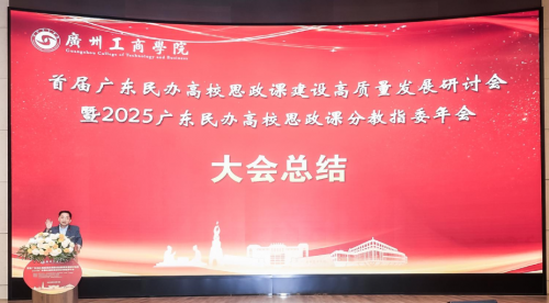 教育部思想政治理论课教指委委员兼分教指导委员会副主任、广东省高校思政课教指委总教指委副主任夏文斌教授作总结发言。他指出,此次研讨会充分展现了广东民办高校思政课建设的责任担当与创新活力,希望大家以此次会议为契机,持续深化理论武装、强化问题导向、突出民办特色,将研讨成果转化为推动思政课高质量发展的具体举措,共同书写立德树人新篇章。