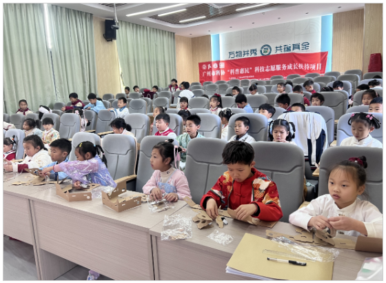 活动的第二项是手工制作环节。在这个环节中,科普志愿服务队为同学们准备了制作VR眼镜的材料包。学生们通过动手制作模型,不仅了解了虚拟现实技术的基本原理,还在制作过程中培养了创造力和动手能力。在合作与交流中,学生们发挥了自己的想象力,形成了浓厚的创作氛围。