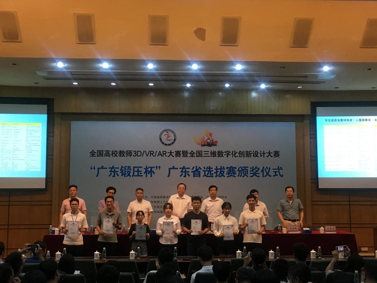 【本网讯】近日,2019年全国三维数字化创新设计大赛“广东锻压杯”广东赛区决赛评审和颁奖典礼在华南理工大学北校区举行。我院计算机科学与工程系共组织了近50个团队参加了比赛,经过为期3个多月的精心设计、艰苦备赛,共有16组作品通过网络评审(初赛)进入决赛,经过现场答辩的激烈角逐,获特等奖3项、一等奖3项、二等奖6项、三等奖4项。