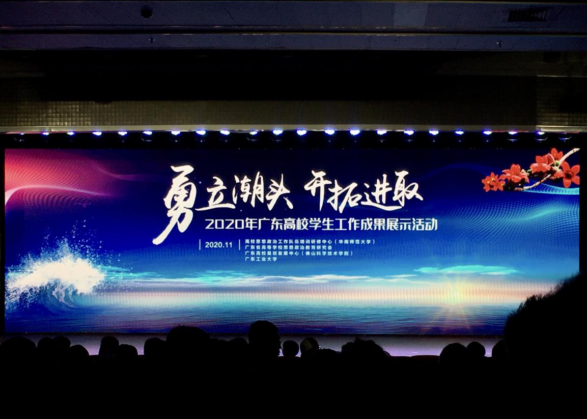 【本网讯】为深入贯彻落实全国教育大会及全国高校思想政治工作会议精神,促进学生工作专业化、精品化,发挥新时代高校学生工作典型事迹和先进经验的引领示范作用,日前,由教育部高校思想政治工作队伍培训研修中心(华南师范大学)、广东省高等学校思想政治教育研究会、广东工业大学共同承办的“勇立潮头 开拓进取——2020年广东高校学生工作成果展示活动”于11月13日在广东工业大学举行。