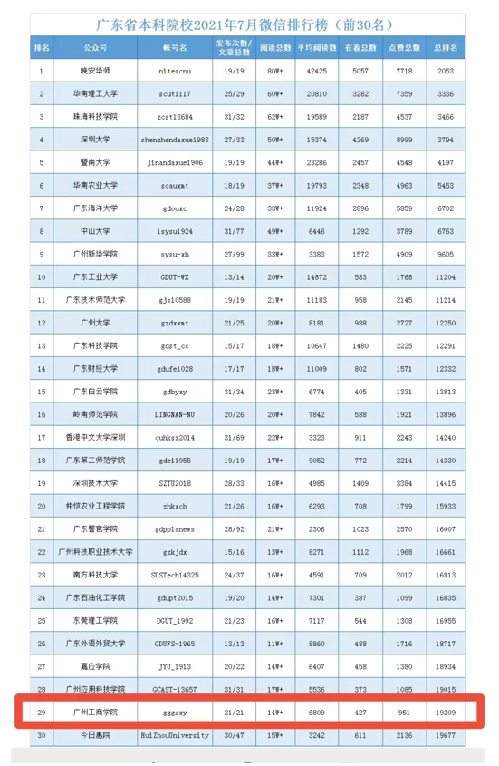 根据广东教育官微显示,ky开元集团官网官微进入“广东省本科院校2021年7月微信排行榜(前30名)”,位列第29名。