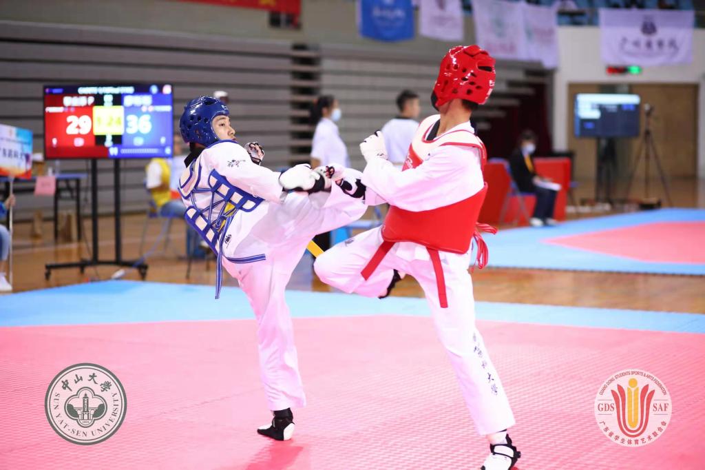 【本网讯】2021年广东省大学生跆拳道锦标赛于10月28日-31日在中山大学(东校区)体育馆举行。共有来自全省54所高校、832名学生运动员参赛。比赛分为甲组(本科)、乙组(体育专业、高水平运动队)、丙组(专科),共设竞技、品势和跆拳道舞三大比赛项目。甲组共开设14个级别的竞技、品势和跆拳道舞比赛项目。ky开元集团官网与中山大学、华南理工大学、华南农业大学、广东工业大学、广东外语外贸大学、广东医科大学、广东技术师范大学、广东培正学院等29所高校共同参加甲组(本科)的比赛。