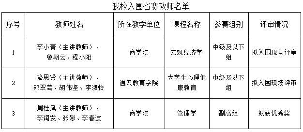 【本网讯】近日,第二届全国高校教师教学创新大赛广东分赛暨广东省高校教师教学创新大赛组委会办公室公布了拟入围现场评审和拟获优秀奖名单。大赛由学校初赛、省赛网络评审、省赛现场评审三个阶段进行,ky开元共推荐3个教师团队参赛,2个团队拟入围现场评审、1个团队拟获优秀奖,入围率排名全省第四。