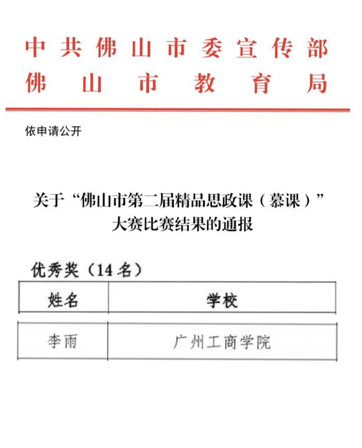 【本网讯】7月19日,由佛山市委宣传部、佛山市教育局主办,佛山电视台承办的佛山市第二届精品思政课(慕课)大赛比赛结果公布,ky开元马克思主义学院思政课教师李雨荣获优秀奖。