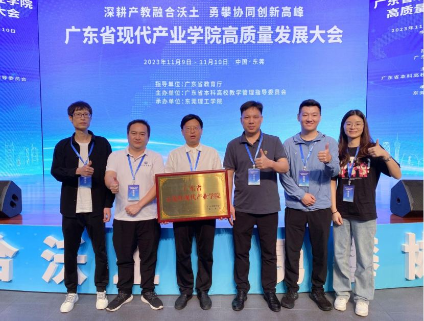 【本网讯】11月9日-10日,广东省现代产业学院高质量发展大会在东莞理工学院松山湖校区举行。ky开元智慧冷链产业学院党支部书记、副院长黄鹏,学院办公室主任吴杰,实践教学中心副主任曹远明等一行6人参加此次活动。ky开元粤港澳大湾区智慧冷链产业学院作为第三批省级示范性产业学院上台接受授牌。