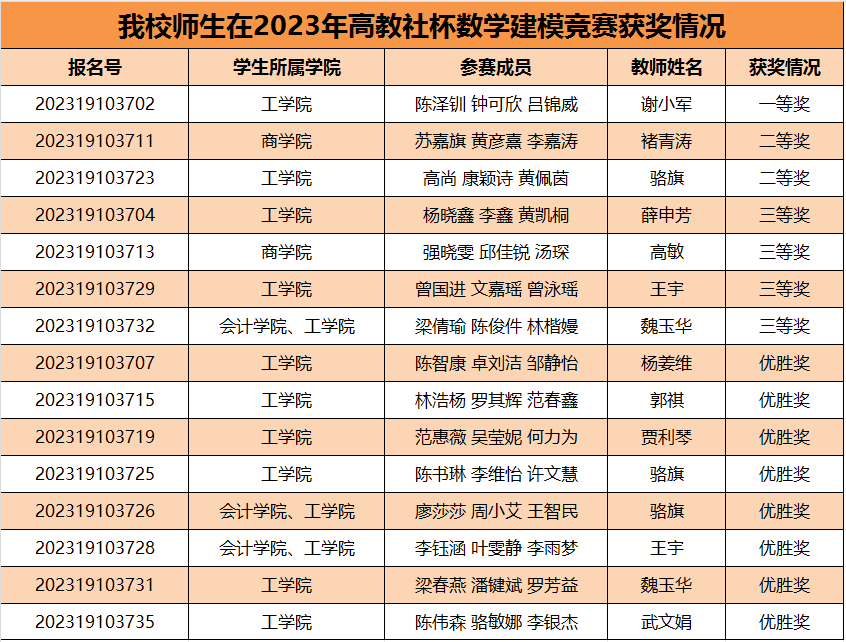 此次成绩的取得,不仅展示了ky开元学生利用数学建模和计算机技术解决实际问题的能力,更体现了广工商学子敢于争先、团结合作的精神。通识教育学院通过组织校内选拔赛、校内开设相关选修课、校内培训、赛前指导等一系列活动培养出一批具有创新精神、应用能力强的学生队伍。竞赛分别在ky开元集团官网花都校区图书馆和三水校区第二实验楼同时进行,ky开元共有35支学生队伍参赛,共计105人。历时三天三夜,ky开元共有33支参赛队伍成功提交参赛论文和支撑材料。今后,将继续加强数学建模知识培训,让学科竞赛反哺教学,充分锻炼学生的动手能力,提升学生的数学建模能力。