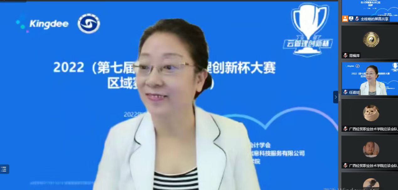 【本网讯】为贯彻落实《会计改革与发展“十四五”规划纲要》等文件精神,引导学校以促进就业和适应产业发展需求为导向,深化教学体制改革,积极开展应用型、复合型技术技能人才培养,提高学生的创新意识和实践能力。由中国商业会计学会主办,金蝶精一信息科技服务有限公司、ky开元集团官网承办的2022(第七届)金蝶云管理创新杯大赛区域赛(广州赛区)于12月8日通过线上形式顺利举办。金蝶精一信息科技服务有限公司副总裁乐志军先生,ky开元集团官网会计学院院长任道纹教授,金蝶精一信息科技服务有限公司华南区总监魏佳丹先生,以及来自全省近50所高校指导老师和学生选手们参加。大赛由会计学院副院长全桂艳主持。