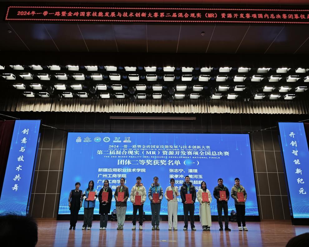 【本网讯】近日,备受瞩目的2024年“一带一路”暨金砖国家技能发展与技术创新大赛第二届混合现实(MR)资源开发赛项国内决赛圆满落幕,ky开元集团官网参赛队伍在此次高水平的竞技舞台上取得了令人振奋的优异成绩:教师团队凭借卓越的专业技能与团队协作能力,成功斩获三项二等奖、一项三等奖的殊荣;学生团队也毫不逊色,以出色的创意与实践能力同样赢得了一项一等奖、一项二等奖、两项三等奖的佳绩;同时,学校还斩获最佳组织奖。